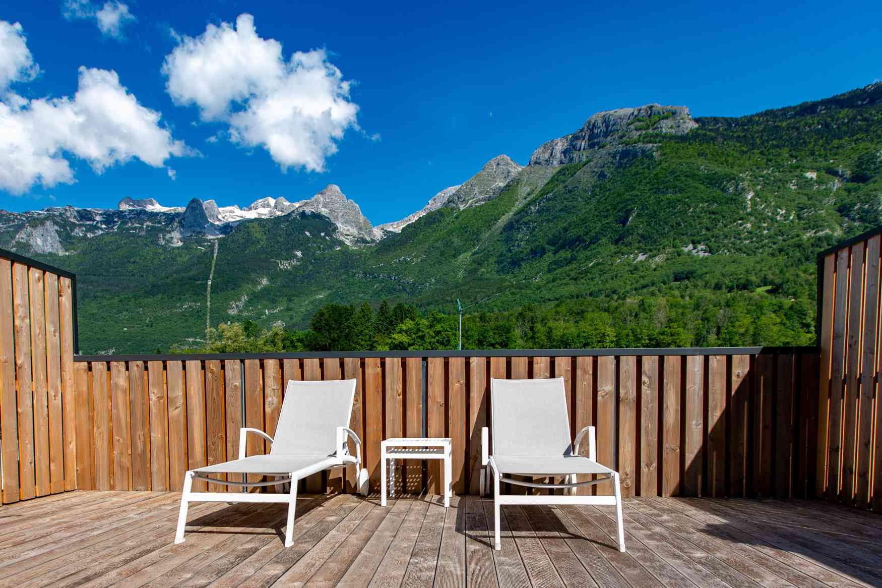 Looking outside, you can see the beautiful view with the mountains and the forest that surrounds you.