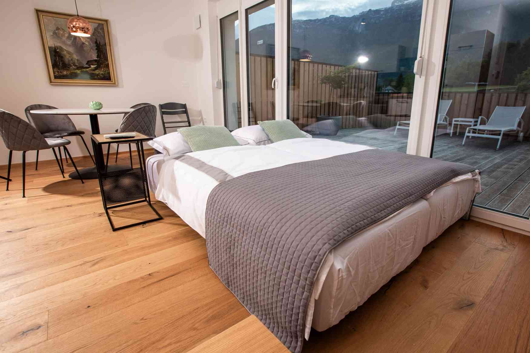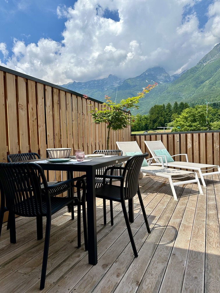 Relax on the beautiful 33m² terrace and take in the stunning views of the Alps, perfect for unwinding after a long day.